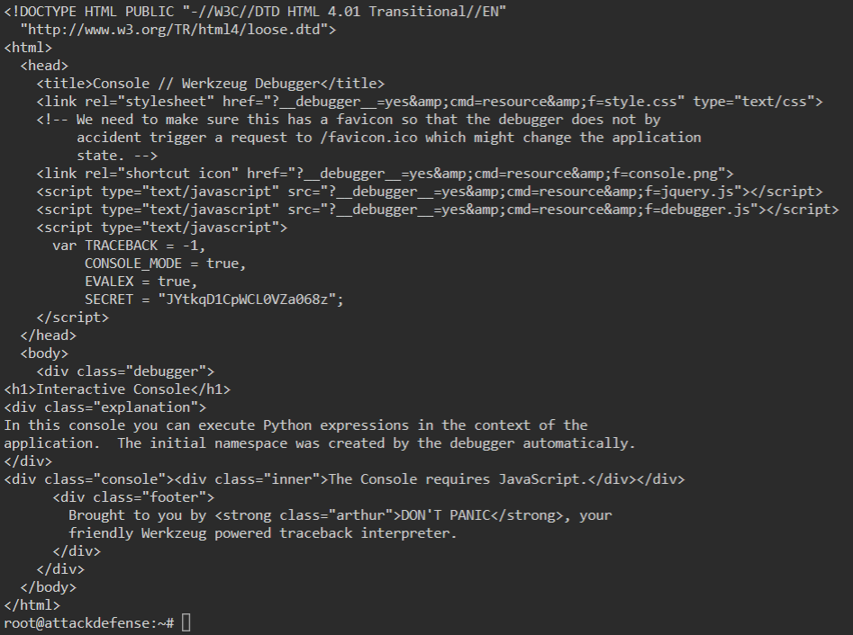 When we do this, we get the source of the page back. Inside we see a variable called SECRET. This could be useful or it could be a standard part of the service.