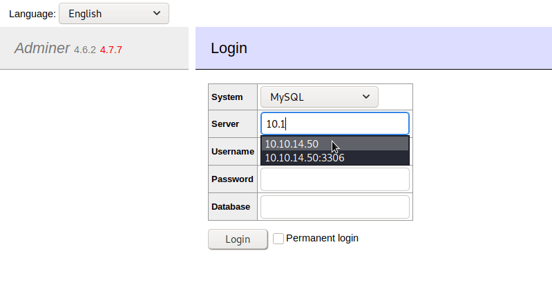 by Kaimi-io is really good in this situation. So naturally we use the adminer.txt list with gobuster and found /adminer.php.