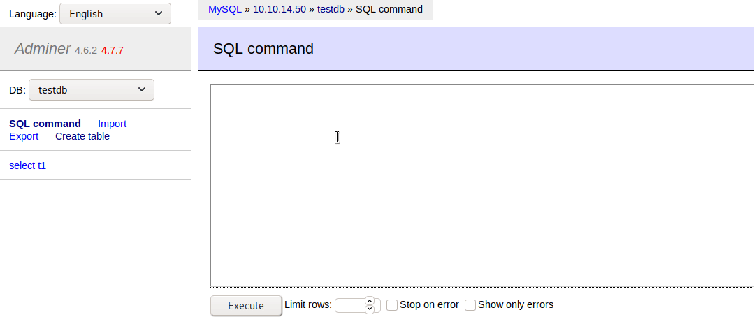 - Go back to the Adminer web interface and connect back to our database.