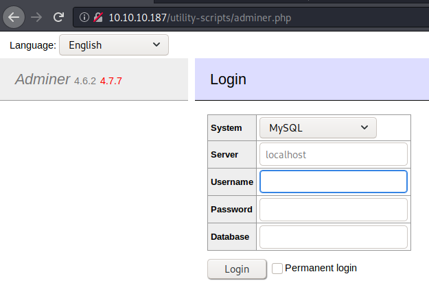 We’ll add these to our username and password lists and continue to enumerate. If we look at the db_admin.php page we see more credentials as well as an interesting note - "// TODO: Finish implementing this or find a better open source alternative". Now if we try to navigate to /db_admin.php we see it doesn’t exist. We can reasonably assume it has been replaced with an opensource tool. Some googling for ‘opensource db management’ led me to a list of the top 10. First on the list was a tool called Adminer.