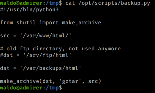 We will tell the Linux system what our PYTHON path is. Then we’ll create a fake shutil.py library that gets called when we execute the script. Since the script runs that command as root, the script also runs as root, so we’ll copy the root flag somewhere else.