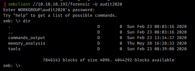 Now with these credentials we’ll want to use them to authenticate back to our smb shares and rpcclient for futher enumeration. Connecting to the forensic share still has listing denied. We are able to connect via rpcclient and enumerate a bit further.