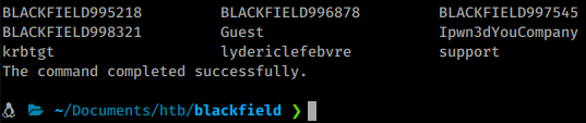 rpcclient -U "blackfield.local\support" 10.10.10.192