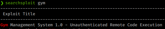 We see only two ports. So we head over to port 8080 and see what is being hosted. We land on a gym page. Exploring the page a bit shows that it’s built on a software called Gym Management Software 1.0. A quick google shows us there are a few possible exploits for this software.
