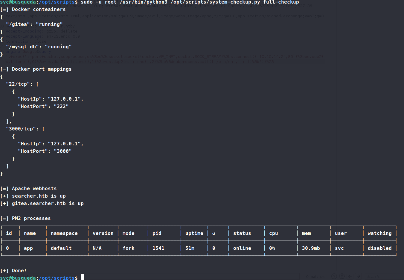 We use the mysql credentials to log into the gitea as administrator. We see there is a scripts repo created by the administrator. These are the scripts that correlate to our sudo -l command. Now, as we inspect the code we something stand out in the system-checkup.py.