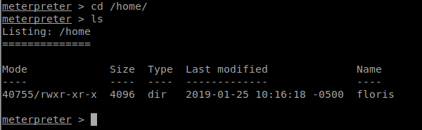 Looks like we’re the www-data account. Lets take a look around. When we look at /home/ we only see one user home folder, floris.