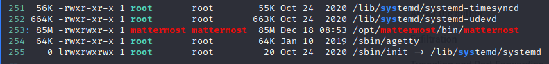 Snag the user.txt flag and start enumerating! We download linpeas.sh to our target and start enumerating. Nothing really sticks out, so we’ll have to manually dig around. One item that is of interest is /opt/mattermost