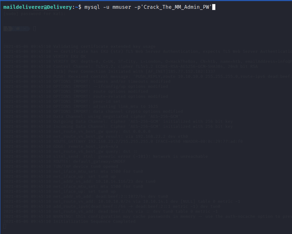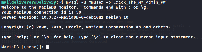 mysql -u mmuser -p'Crack_The_MM_Admin_PW'