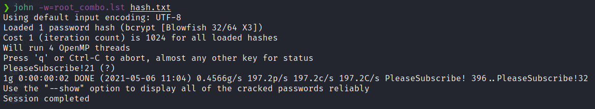 Now with our new wordlist, we simply supply it to John and let it do it’s work.