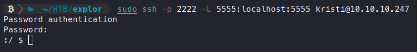 sudo ssh -p 2222 -L 5555:localhost:5555 kristi@10.10.10.247
