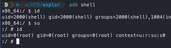 Once we authenticate, we get a shell, as usual. Now we will try to connect to the ADB port on our local machine.