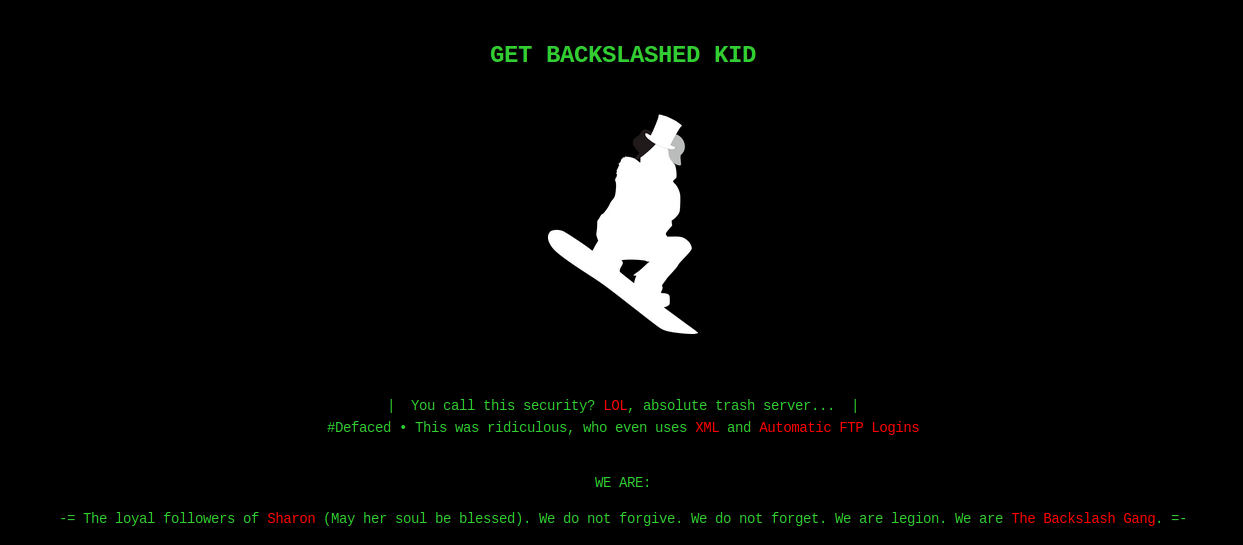 We’ll, it looks like the path forward is on the web interface somewhere, let’s look. We do see that forwardslash.htb is noted in our scan so we’ll add that to our hosts file. We are greated with this awesome landing page which seems like the site has been defaced.
