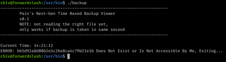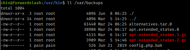 Every time we run this application we get a new MD5 Sum back. Assumably linked to the time run. When we look back at our linpeas results we see a backup file owned by Pain as well.