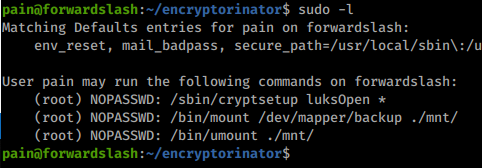 We now have a password to this recovery image! We saw in our previous enumeration that Pain can run some software with privileges.
