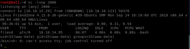 So lets try to switch user and see what we get. Su must be run from a terminal. Looks like we’ll need to spawn a TTY session. We can do this by leveraging Python that is built into the OS. For more cool shell tricks, see here .