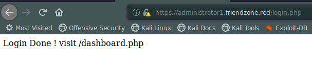 We see that administrator1 has a login page, lets use the credentials from before to see if they work. Sure enough they do, and we get a message.