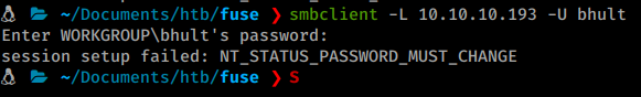 Now we we try to connect using smbclient we are told we need to change our password.