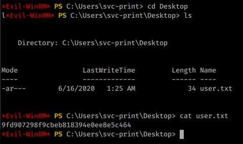 evil-winrm -i 10.10.10.193 -u svc-print