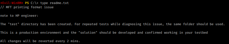 Just like we though. The password does indeed work with the scan service account as well as the print account! We’ll now try to use evil-winRM to log into the machine as that account.