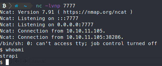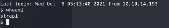 Now we have a foothold on the server, we can try to enumerate and gain system access. The strapi user has the ability to read from the devloper’s home directory, and we snag the user.txt flag!