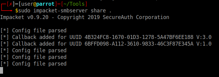 impacket-smbserver share .