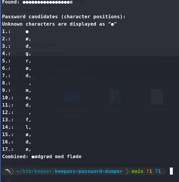 dotnet run ~/htb/keeper/KeePassFullDump.dmp