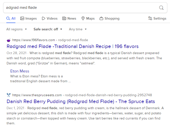 Awesome! We now have an output with one wildcard in it - ●ødgrød med fløde. Now we can try each of the suggested characters in the wildcard space in order to unlock the database. I actually DDG’d for the password without the wildcard and it came back with this:
