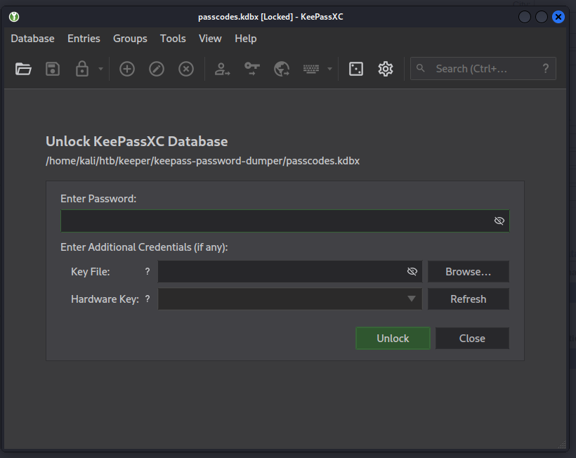It looks delicious! That most likely solved our problem. R is the character we are looking for. Now we can use KeePassxc to load this database.
