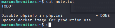 Now that we are in as marcus, we can look at the note.txt file in his directory.