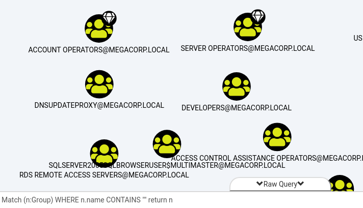 This will return all the groups in the domain. This will allow us to inspect them and see the relationships, if any, between other objects.