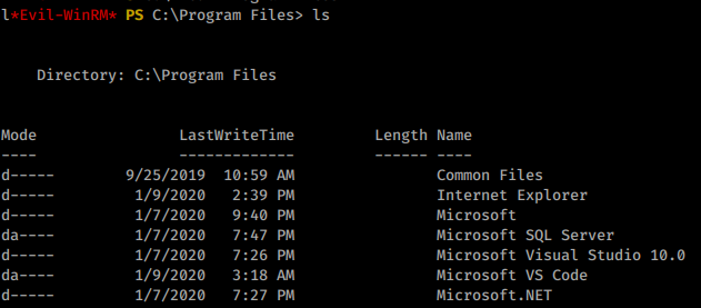 shows us that this is VSCode. We can confirm this by heading to C:\Program Files\ and indeed see VSCode listed.