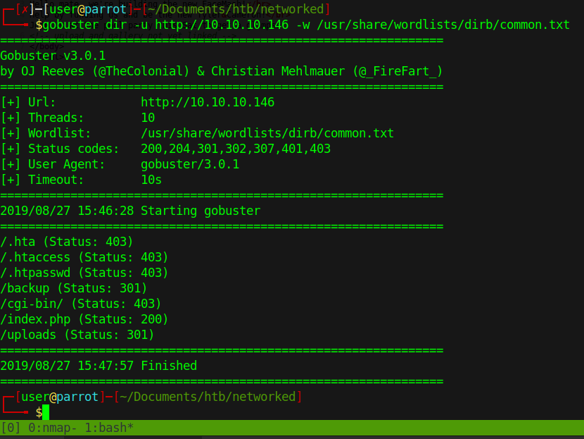 Today we are going to go though the easy box, Networked. This box was pretty unstable since it has just released a few days ago. Anyway, lets get into it!