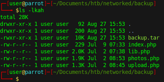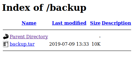 We do indeed see some commonly named items. backup and uploads are good starts. We head over to backup and we find a backup.tar.