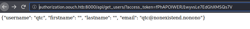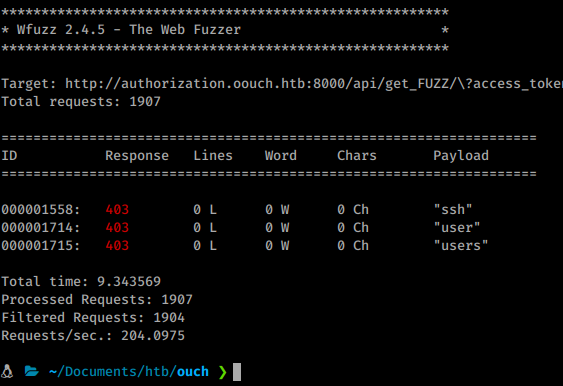 wfuzz -c -u "http://authorization.oouch.htb:8000/api/get_FUZZ/\?access_token=fPhAPOIWERJ1wyvsLe7EdGhXMSQs7V" -w /usr/share/seclists/Discovery/DNS/namelist.txt --hc 404