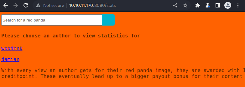 Each has a link to an image and the option to export the table via export.xml. This is something we might be able to abuse. We also look for XSS in the search function but nothing basi really pops out. One thing we do notice is that in the request, we see Red Panda Search | Made with Spring Boot as the title tag. A quick Google shows that this is a Java based template framework. There were also some other exploits listed but need to test out what we might be working with in the search field. A great place to start is PayloadsAllTheThings