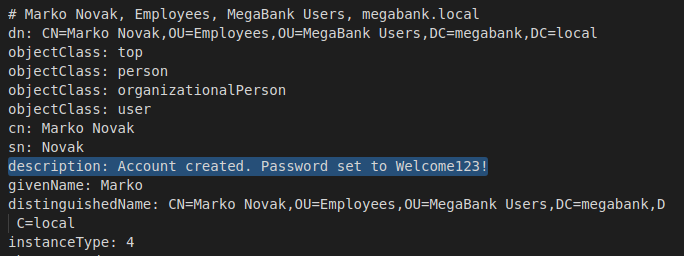 ldapsearch -x -h megabank.local -b 'dc=megabank,dc=local'