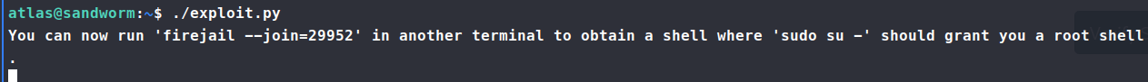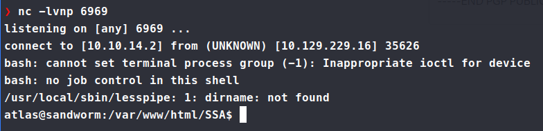 Now, we have a connection as Atlas that has more priviledges. I tried to run the above exploit but it crashed our connection session, so in order to maintain some persistance, we need to add our local id_rsa.pub key to the Atlas user authorized_key file.