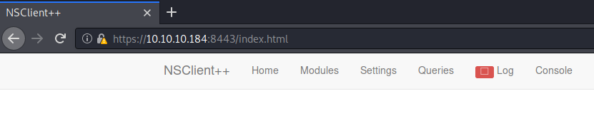 We are telling SSH to map our local (-L) port of 9000 to our local machine and forward it to port 8443 on our remote machine. We then supply the credentials of the remote machine - nadine@10.10.10.184. So when we open a web browser and go to 127.0.0.1:9000 we should be redirected to the NSClient page as if we were on it locally.