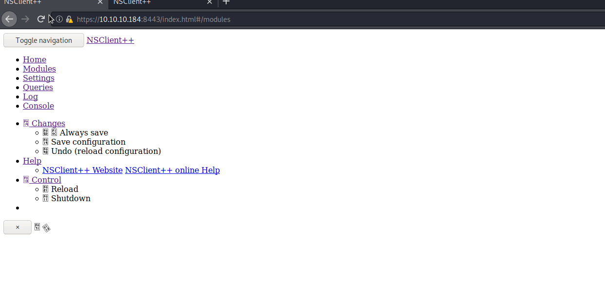 Nothing seems to be loading on this page however. We do another searchsploit for NSClient and come back with a local windows exploit for escalation
