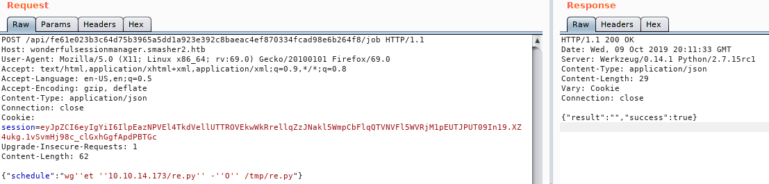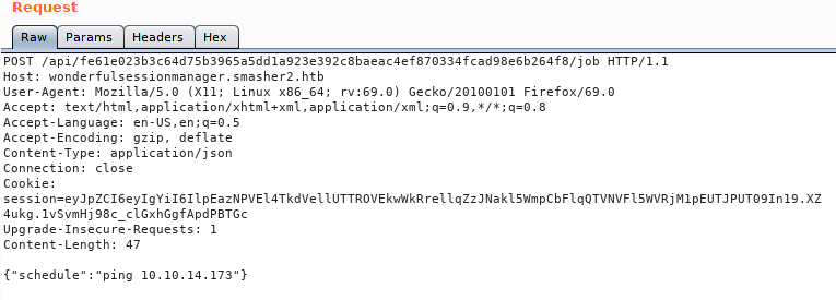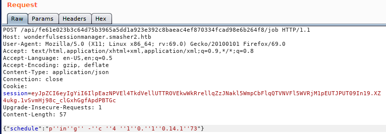 This can let us craft a POST payload to the API endpoint to gain some information. We can use the format {"schedule":"Command"} to do this. We also want to look at the .so file. .so extension often refers to a shared-object. Essentially it’s an executable we can decompile and look at the code. Now that we have an understanding of these two files, lets explore the wonderfullsessionmanager address.