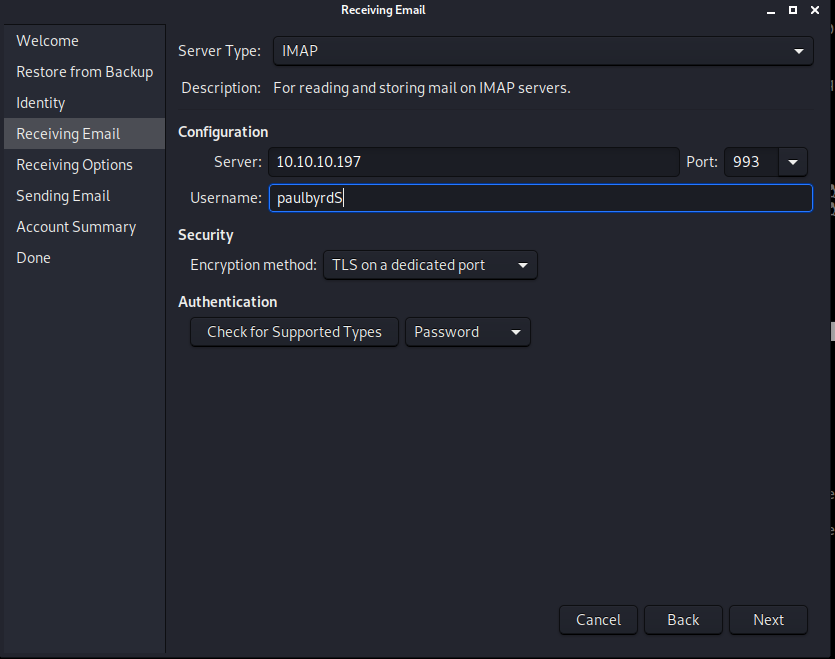 Now that we have a password, we can try it against FTP. No dice. We’ll, we have an email password, let’s try to log into Paul’s email. There are a few email clients out there. Commonly Evolution is easy and fast to get.