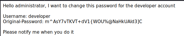 The other mail is a basic task. Now we didn’t see a respone from the admin about the password being changed, so it still might work. Let’s try.